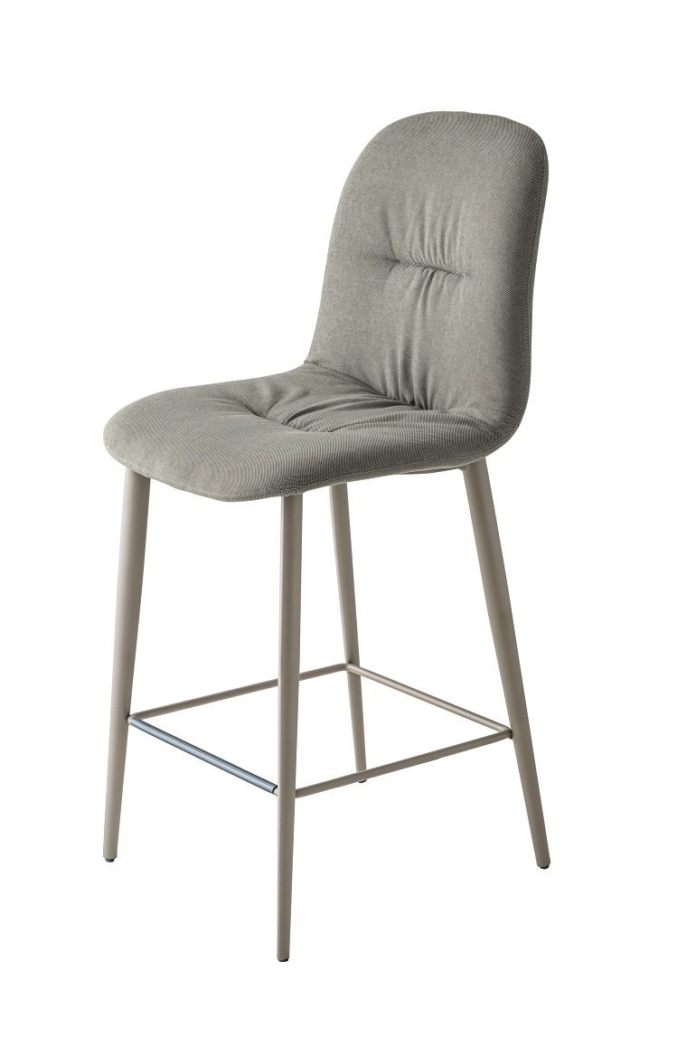 Barová židle Chantal má komfortní čalouněný sedák s efektním prošitím. Čalounění je v nabídce v různých materiálech i barvách. Kovová lakovaná podnož je k dispozici v široké nabídce barevných odstínů.