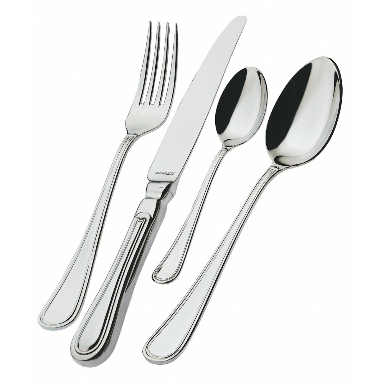 Společnost Bugatti, výrobce vysoce kvalitních příborů a nádobí, při výrobě využívá veškeré moderní technologie, stylový design a materiály jako je nerezová ocel, chromovaná mosaz, akryl v různých barvách a odstínech. U dekorativních prvků používá galvanického nanášení zlata a stříbra.