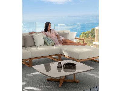 Konferenční stolek Thea je navržen tak, aby se dokonale začlenil do elegantního a funkčního venkovního prostředí. Je vyroben z konstrukce z teakového dřeva, která zdůrazňuje jeho stabilitu a vytříbený design. Stolek vyniká deskou s jemnými, lehce zaoblenými tvary, které celku dodávají moderní a harmonický vzhled.