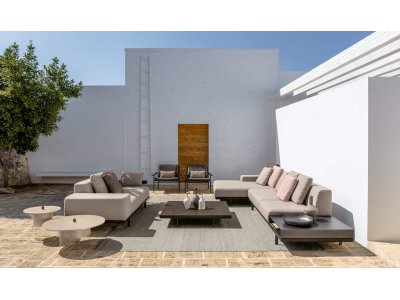 Konferenční stolek Allure zaujme svým geometrickým designem a moderním vzhledem. Masivní dřevěná deska spočívá na čtyřech hliníkových nohách, čímž vytváří harmonickou kompozici, která přináší do venkovního prostoru rovnováhu i osobitý charakter.