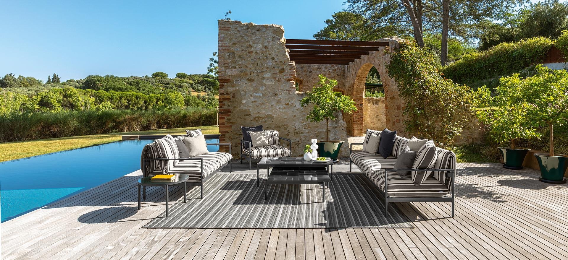 Moderní a sofistikovaná, 3místná pohovka Nalu je skutečnou poctou mistrům designu. Tato pohovka vyniká originálním řešením, kdy se sedací polštáře proměňují v opěradla, a doplňuje jej pololesklá hliníková konstrukce s nádechem retro stylu. Kolekce Nalu představuje spojení sofistikovaného designu, precizního zpracování a vysokého komfortu.
