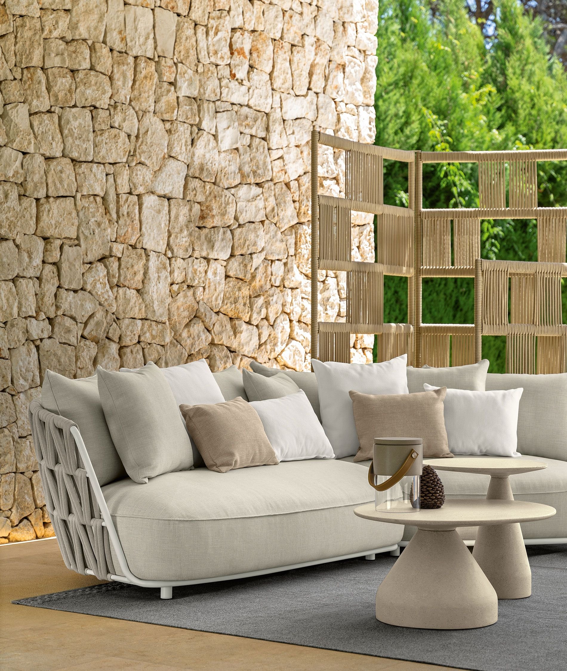 - Komfort: Polstrování je zhotoveno z rychleschnoucí pěny a potaženo odolnou textilií, která je příjemná na dotek a zároveň odolná vůči UV záření a povětrnostním vlivům.