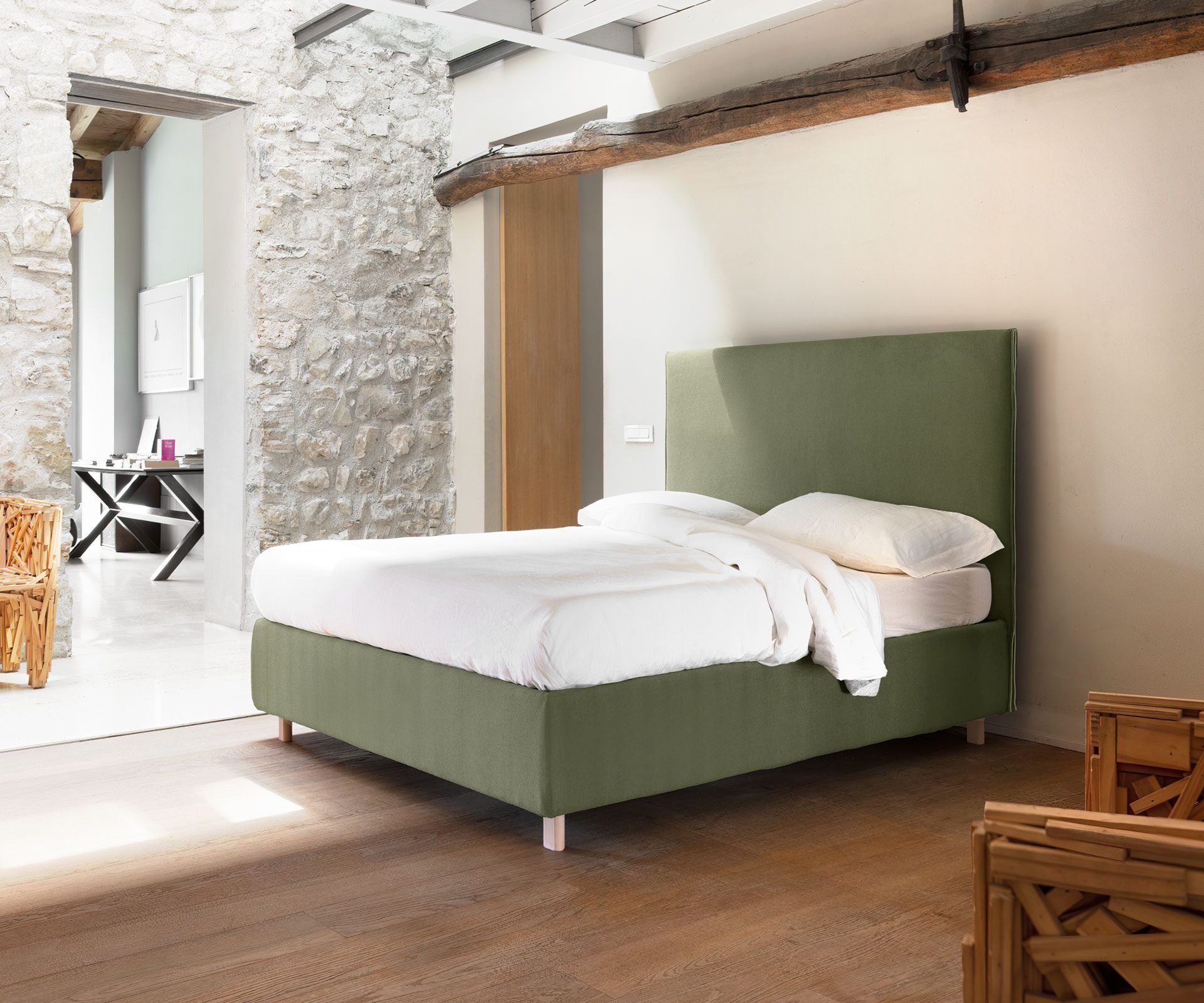 Postel Cosmo zaujme čistými liniemi, sofistikovanými detaily a minimalistickou geometrií. Měkké, bohatě polstrované čelo poskytuje vysoký komfort a zároveň podtrhuje elegantní a vytříbený charakter postele. Jeho zeštíhlený tvar dodává celku lehkost a nadčasový vzhled. Postel se navíc vyrábí také ve variantě s vysokým čelem Cosmo High, která ještě více zvýrazňuje její luxusní a reprezentativní charakter.