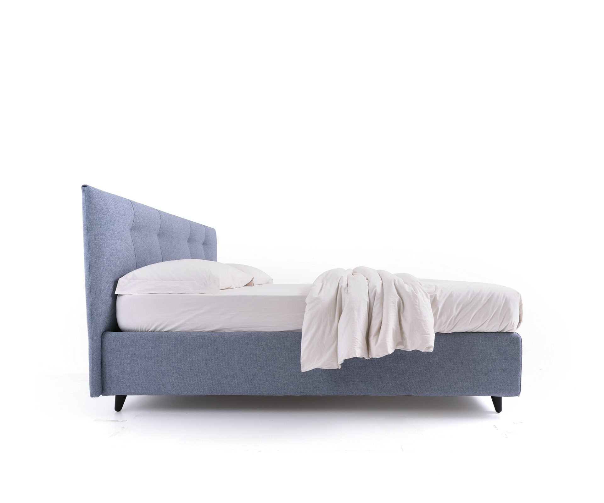 Postel je k dispozici také ve variantě s úložným prostorem, který nabízí praktické řešení pro uložení lůžkovin i dalších nezbytností, aniž by narušil čistý a elegantní vzhled designu.