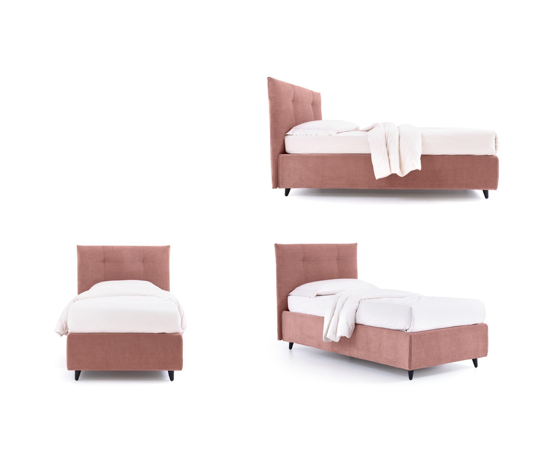 Postel Fancy vyniká elegantním čelem s jemným prošíváním capitoné, které jí dodává pocit měkkosti při zachování subtilních proporcí. Díky kompaktním rozměrům je ideální volbou i do menších interiérů. Pevné čelo doplňuje odnímatelný rám postele, který zajišťuje snadnou údržbu a praktické využití bez kompromisů v designu.