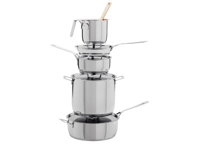 Sada nádobí Pots&Pans od designéra Jaspera Morrisona je vyrobena z leštěné nerezové oceli 18/10. Nádobí je vybaveno pohodlnými úchyty, které umožňují zvedání za pomocí vařečky nebo lžíce. Dno o síle 4 mm zaručuje perfektní distribuci tepla. Hlavním cílem designéra bylo vytvořit funkční a praktické nádobí se zajímavým designem a důrazem pro detail.