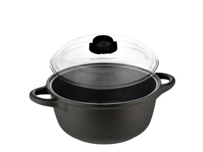 Skleněná poklice Pyrex průměr 20 cm s plastovým úchytem s termoventilem pro regulaci odvodu tepla a páry. Poklice je vhodná pro všechny nádoby stejného průměru.