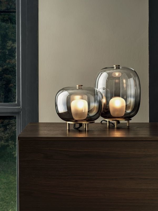 Blow je designová stolní lampa s kulatým stínidlem z borosilikátového skla, které vytváří působivé světelné efekty a jemnou atmosféru v prostoru. Stínidlo je inspirováno tvarem skleněné bubliny, která opticky odlehčuje celek a propůjčuje lampě unikátní estetiku.